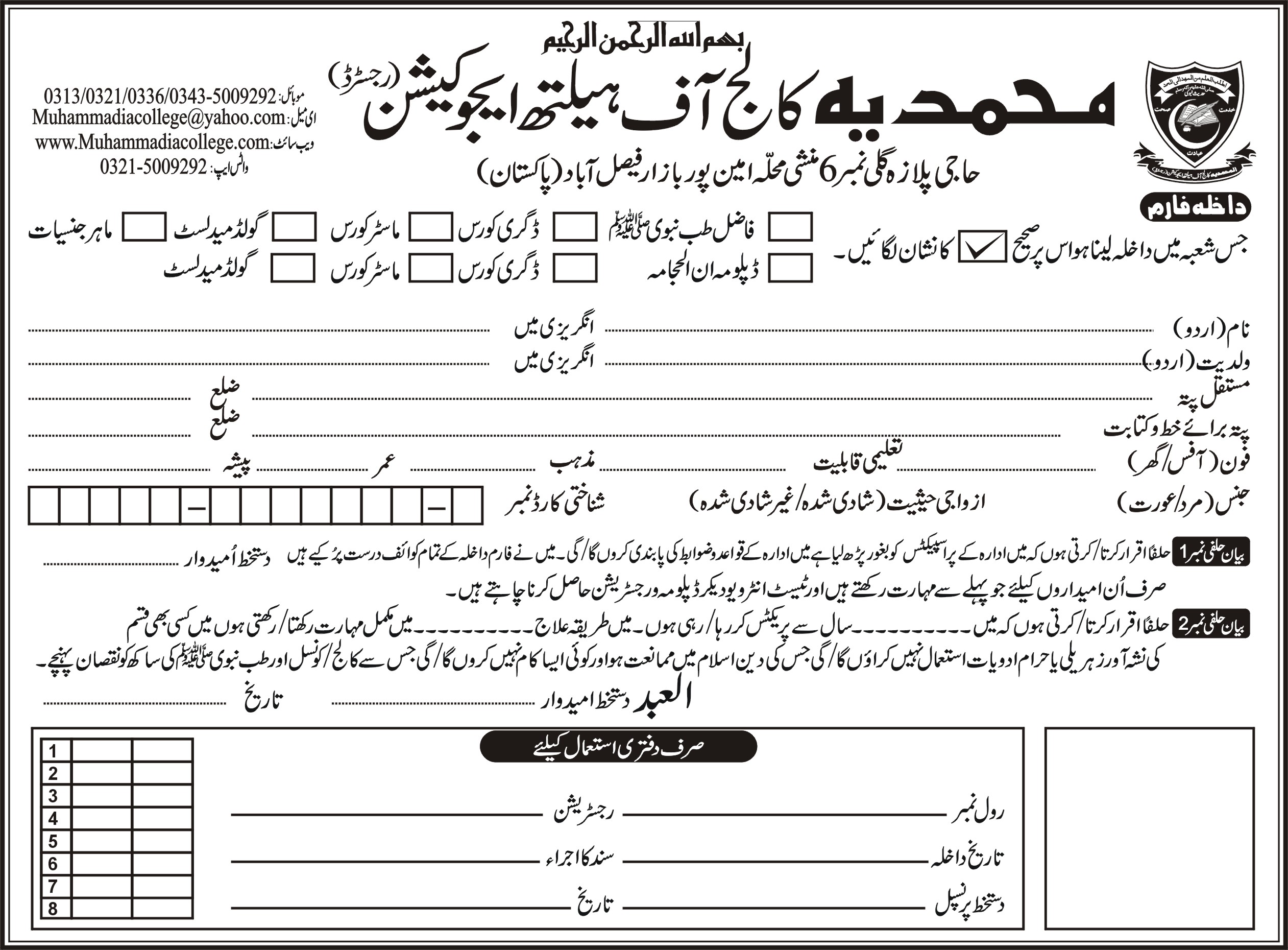 عوام کو طب نبوی ﷺ سے روشناس کروانے اور طب نبوی ﷺ کے فروغ کیلئے ’’محمدیہکالج آف ہیلتھ ایجوکیشن‘‘ کا قیام
